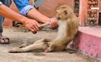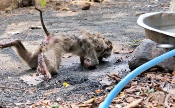 Newborn baby monkey!! poor life baby monkey after giving birth with no mother to take care of Read More