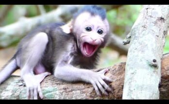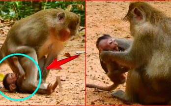 In the vast expanse of the forest, where the rules of nature dictate daily survival, a small monkey faced a harsh introduction to life. Barely past infancy, the young creature …